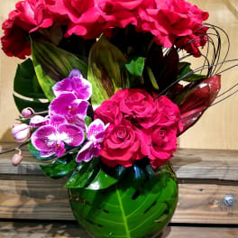 Price: $129.99 Modern Pave with Roses, Cymbidium Orchids and Anique Hydrangea Product Tags: Next-day Delivery